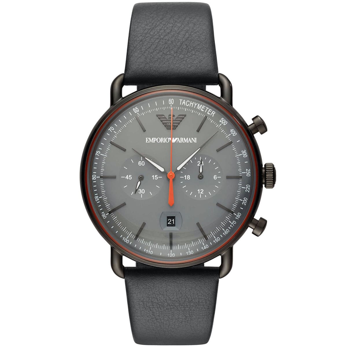 ساعه امبوريوا ارماني رجالي – دائريه نظريه – بلون رمادي – استيك لون اسود – AR11168